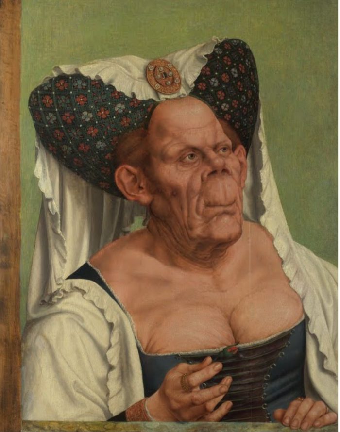 Quinten Massys, ” Ugly old woman”.  “Vieille femme grotesque, ou La Duchesse très laide” Vers 1513