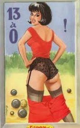 Les perdants devaient donc embrasser les fesses d’une femme prénommée Fanny, peinte, sur un tableau ou même sur le mur ou sous la forme d’une sculpture. Tous les clubs boulistes en possèdent une. Dans le bourg sur une toile très bon marché.