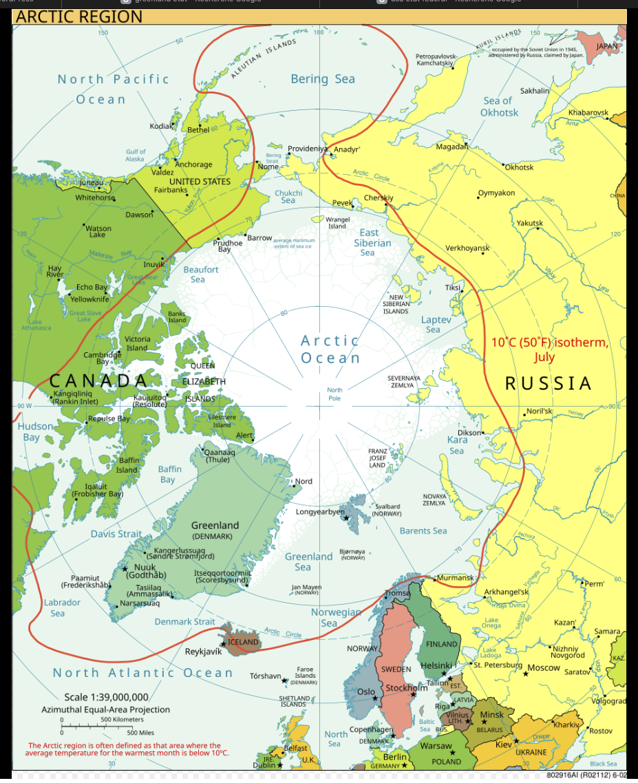 On rappelle que le Groenland se nomme ainsi (en danois) car à l’époque de son annexion, la terre était verte, le climat n’étant pas le même (on n’épilogue pas sur la relation hurlée entre l’action humaine et le changement climatique qui n’est pas le sujet)