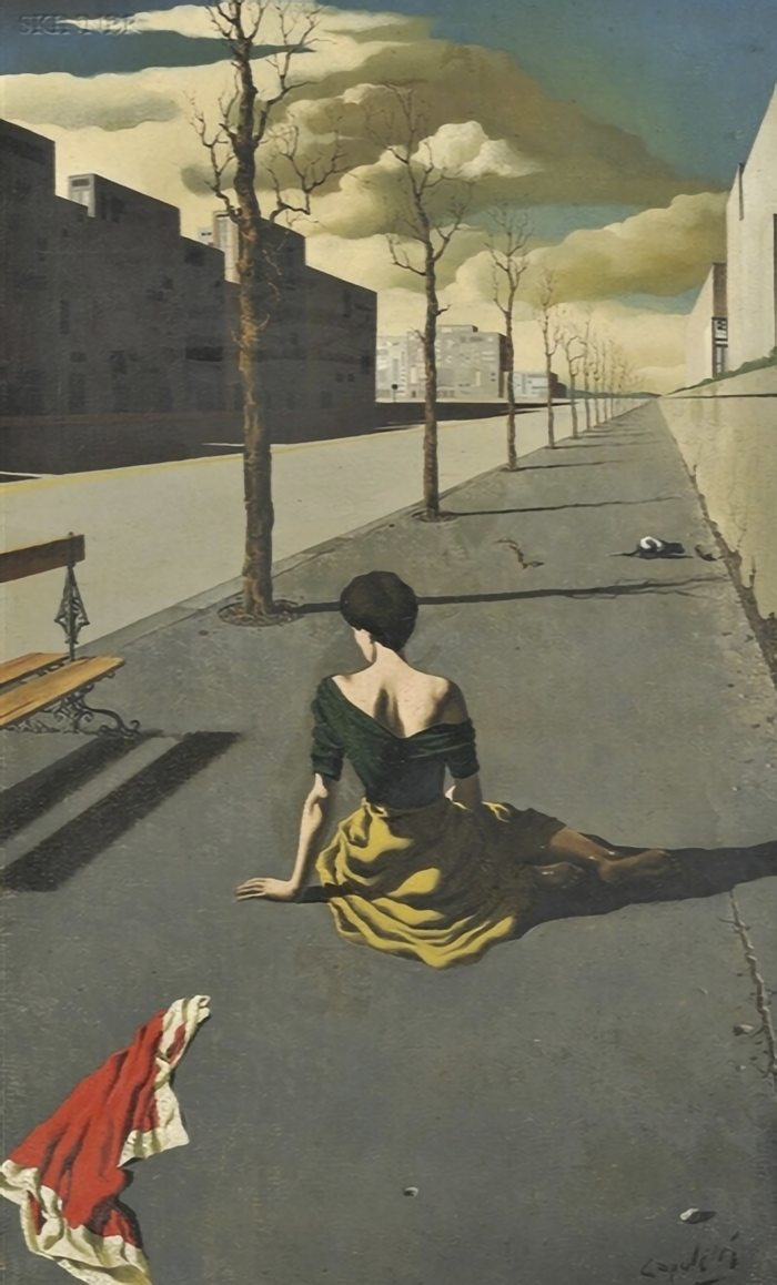 Capuletti est assez peu connu, il n’a même pas de rubrique Wikipédia. Né le 21 mars 1925 à Valladolid, Espagne, décédé le 28 septembre 1976, en Allemagne. Selon Wikiart.org (qui n’est pas Wikipédia) il ferait partie de l’Ecole dénommée “Réalisme magique”. Soit…