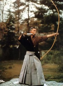 Pour mieux comprendre, observons un maître zen. Voici donc le grand maître Anzawa, qui s’apprête à tirer à l’arc, tel que le décrit Michel Random dans son magnifique livre, « Les arts martiaux ou l’esprit des budô » : « Le maître a fait le silence en lui. Avec des gestes où souffle et lenteur s’harmonisent, il saisit l’arc et l’élève lentement à hauteur de tête et se tourne vers la cible. L’unité de la tension de l’arc et de la concentration intérieure s’est mûrie dans un véritable accomplissement, la flèche s’échappe comme une éclosion accompagnée d’un cri bref et puissant : le Kiaï. Un instant, le regard du maître reste encore fixé sur la cible, car spirituellement la flèche continue, elle est le symbole de l’énergie même, rien ne l’arrête. « Une flèche, une vie. Engagez tout votre vie au tir d’une flèche », dit le maître. Entre le moment où il a pris son arc et celui où il a tiré sa première flèche, un long moment s’est écoulé. Durant ce temps, le maître s’est rendu étranger à tout ce qui n’était pas la pensée du tir, la concentration intérieure a opéré l’alchimie de l’unité : l’homme, l’arc, la flèche et la cible ne font plus qu’un. L’efficacité du tire et sa fonction spirituelle résident dans l’acquisition de cette parfaite unité. C’est au plus haut degré de concentration que la flèche jaillit spontanément comme un enfant laisse échapper quelque chose de ses doigts, avec innocence et oubli : c’est le parfait non-vouloir qui a réalisé le tir, le but lui-même est atteint de surcroît. Tirer à la cible c’est avant tout atteindre l’harmonie du tir, plutôt que la précision du tir qui est atteinte de surcroît.