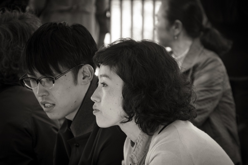 Puis il s’attache à ranger les assiettes, les pots, le beurrier et autres couteaux sur la table. A vrai dire, il les bouge de quelques millimètres, pour ensuite les remettre au même endroit, pour encore les toucher sans les bouger, tout en les fixant. La méticulosité des gestes et de l’ordonnancement nous sidère mais nous n’y voyons pas, ce qui serait facile, un autre trait de la civilisation japonaise et nous nous en tenons, sans bien sûr le formuler, à l’hypothèse d’une petite maladie mentale du serveur, peut-être employé du fait de l’existence, comme en Europe, de lois incontournables sur le salariat obligé des handicapés.