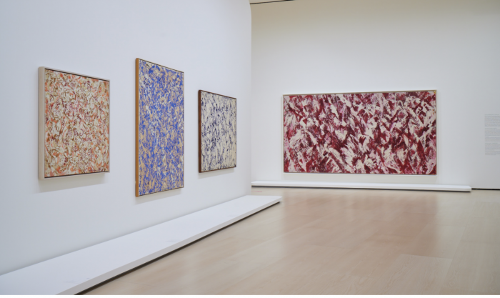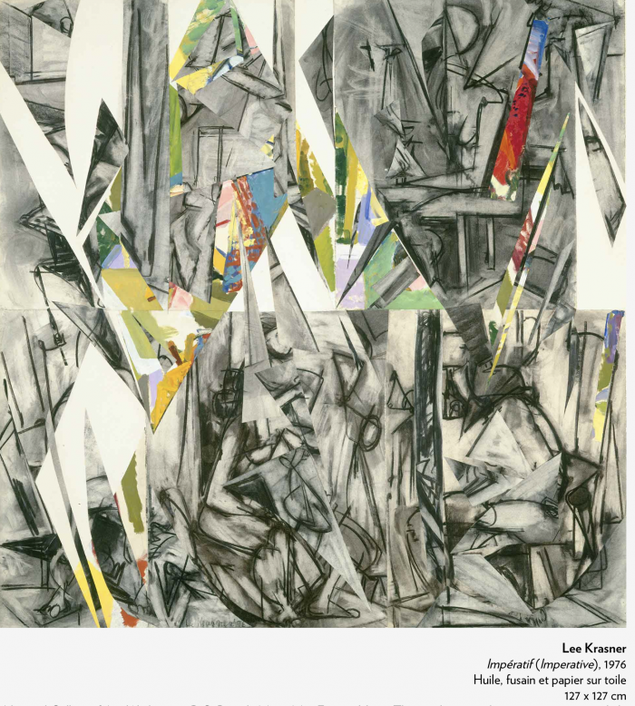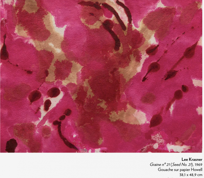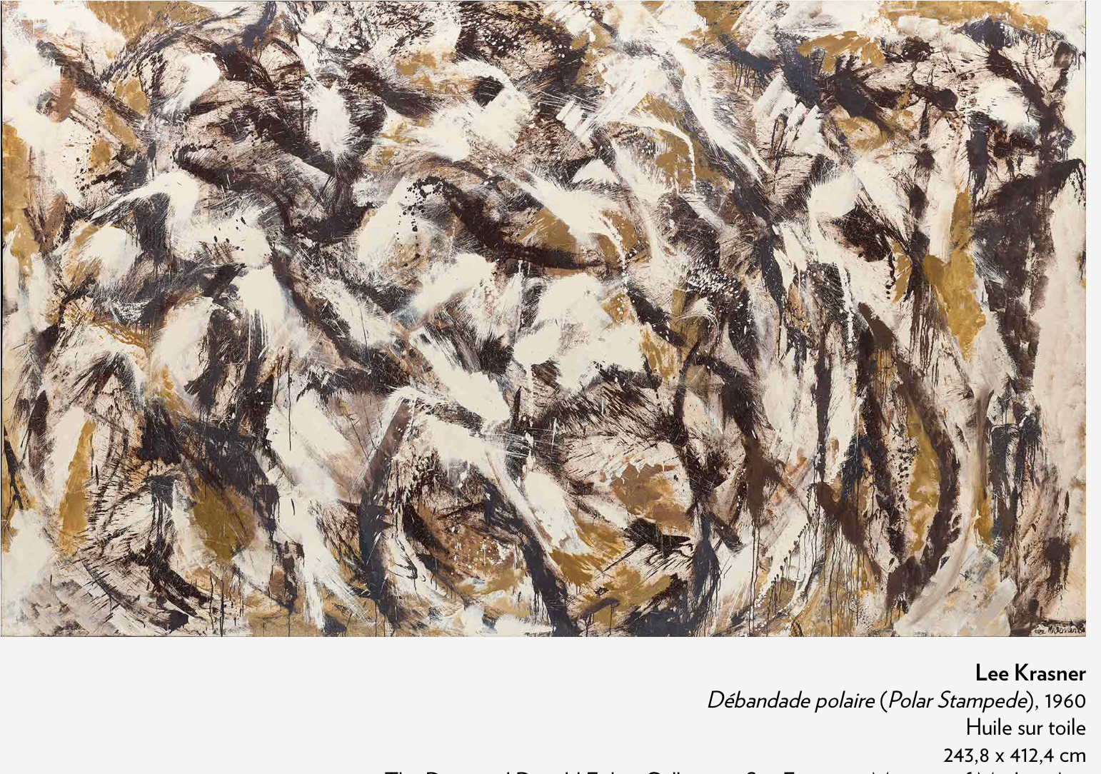 Contrairement à un grand nombre de ses contemporains, Krasner refusa d’avoir un « style distinctif », ce qui lui semblait « rigide et nullement vivant ». Travaillant par cycles d’œuvres, elle chercha continuellement de nouveaux moyens d’atteindre une expression authentique, même dans des périodes particulièrement agitées dues à l’instabilité émotionnelle de Pollock et sa mort soudaine dans un accident de voiture en 1956. L’esprit brillant de Krasner se retrouve dans l’ensemble des œuvres qu’elle a créées dans son atelier pendant plus de cinquante ans, et que nous célébrons dans cette exposition.