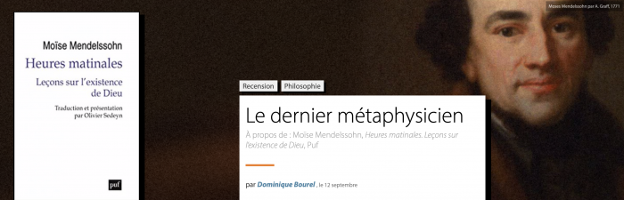 Un livre de Moses Mendelssohn vient d’être traduit (Heures matinales. Leçons sur l’existence de Dieu, Puf).