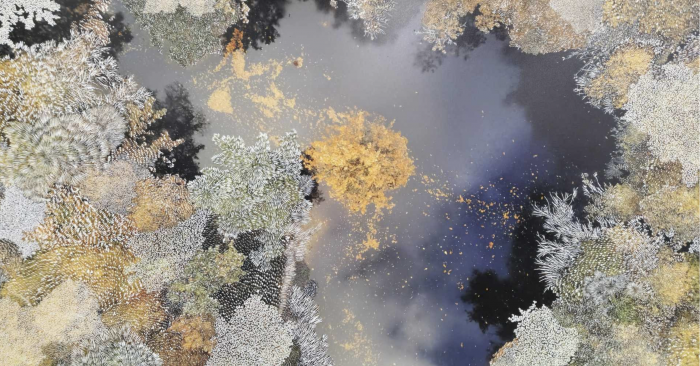 Raphaëlle Peria Apothéose écœurée des étoiles, 2024, grattage sur photographie, 100 x 130 cm