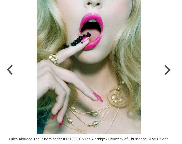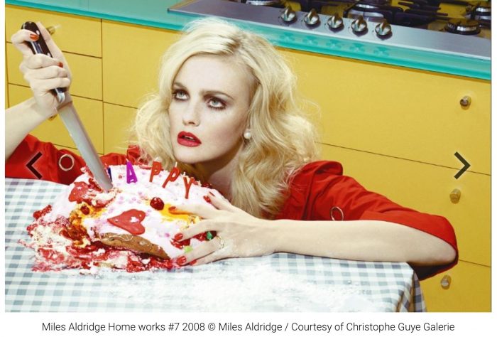 Aldridge n’est pas intéressé par le témoignage d’un moment aléatoire; il réfléchit très soigneusement et construit son propre monde. «… Miles Aldridge est un réalisateur dans l’âme. Ses images sont tout sauf les «portraits» d’un sujet. Ce sont ses acteurs, ses actrices. Il y a une certitude dans ses mises en scènes, qui a du drame, de la tension, de la panique et du désir tragique », écrit Marilyn Manson dans l’introduction de l’album d’Aldridge « The Cabinet ».