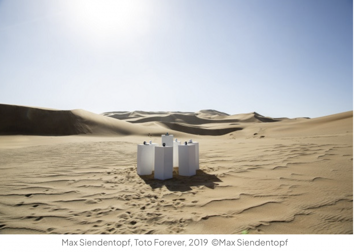 Après Le Fawnhawk, les regards se sont tournés vers l’artiste germano-namibien Max Siendentopf, notamment connu pour sa sculpture Toto Forever. Cette sculpture sonore avait été installée en 2019 dans le désert de Namibie. Rendant hommage au célèbre groupe Toto, l’installation dotée de 6 haut-parleurs diffusait en continue le très populaire morceau Africa. Dans ce territoire désertique, la chanson résonnait en boucle grâce aux piles solaires alimentant, sans interruption, les enceintes. L’artiste n’a, pour l’heure, émis aucun commentaire sur le mystérieux monolithe de l’Utah.