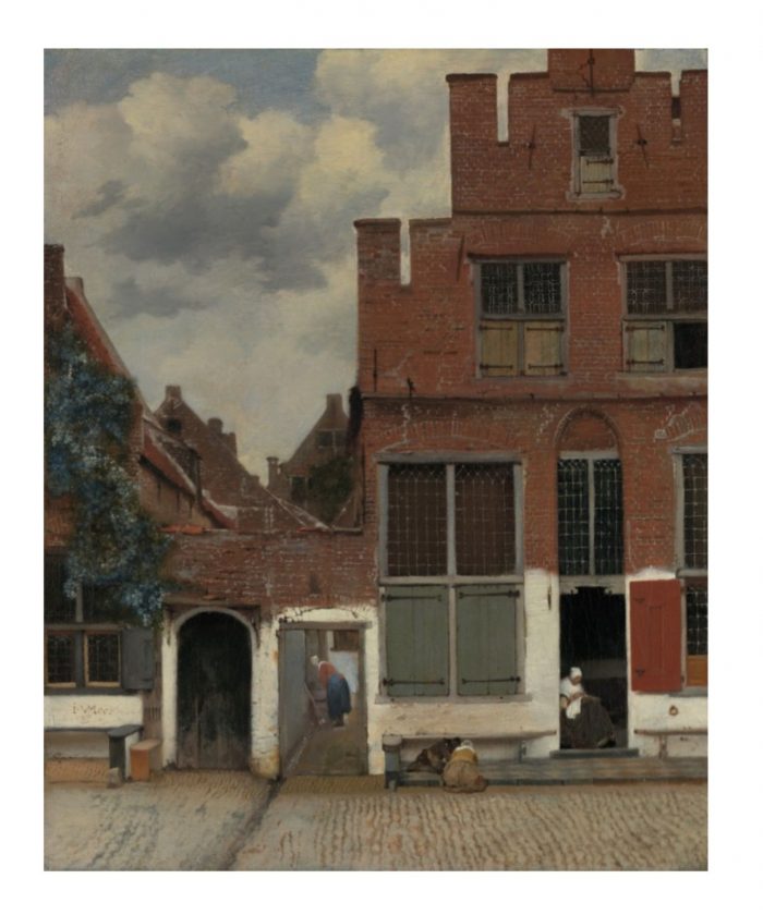 Lorsqu’il y a très longtemps, je considérais qu’il était utile et opportun de discuter de la spécificité de la photographie au regard de l’œuvre picturale et son histoire, je montrais ce tableau de Vermeer (que je viens de retrouver en ligne) en insistant sur son cadrage, résolument photographique et son thème, concentré dans un graphisme contemporain. Ce type de ruelle et de façade a souvent été capturé par les plus grands photographes. Je disais que “le graphisme fédérait l’art”; qu’il existait une concurrence entre “le dérangement” et “le graphisme” pour définir l’art, dans sa rupture moderne.